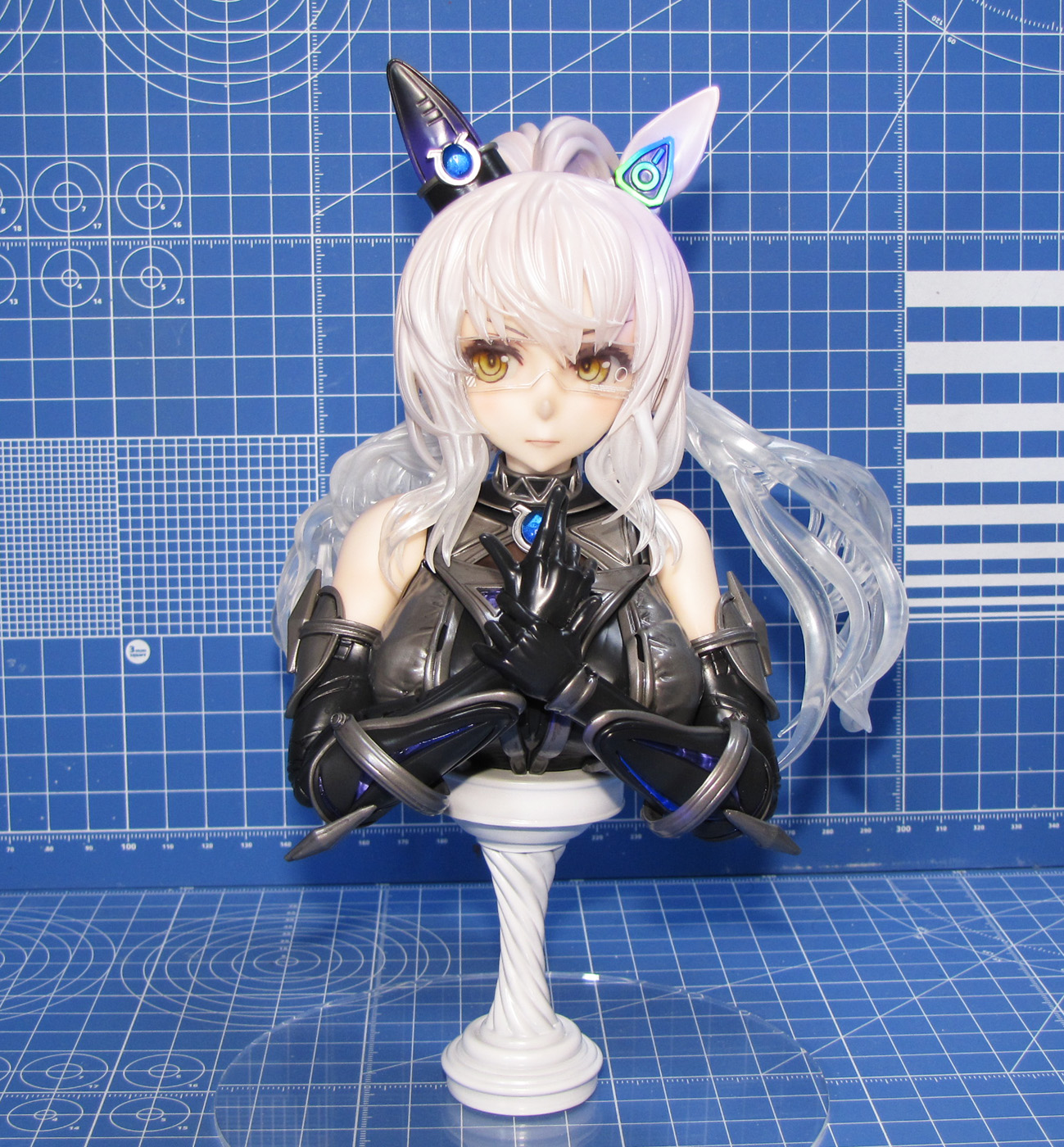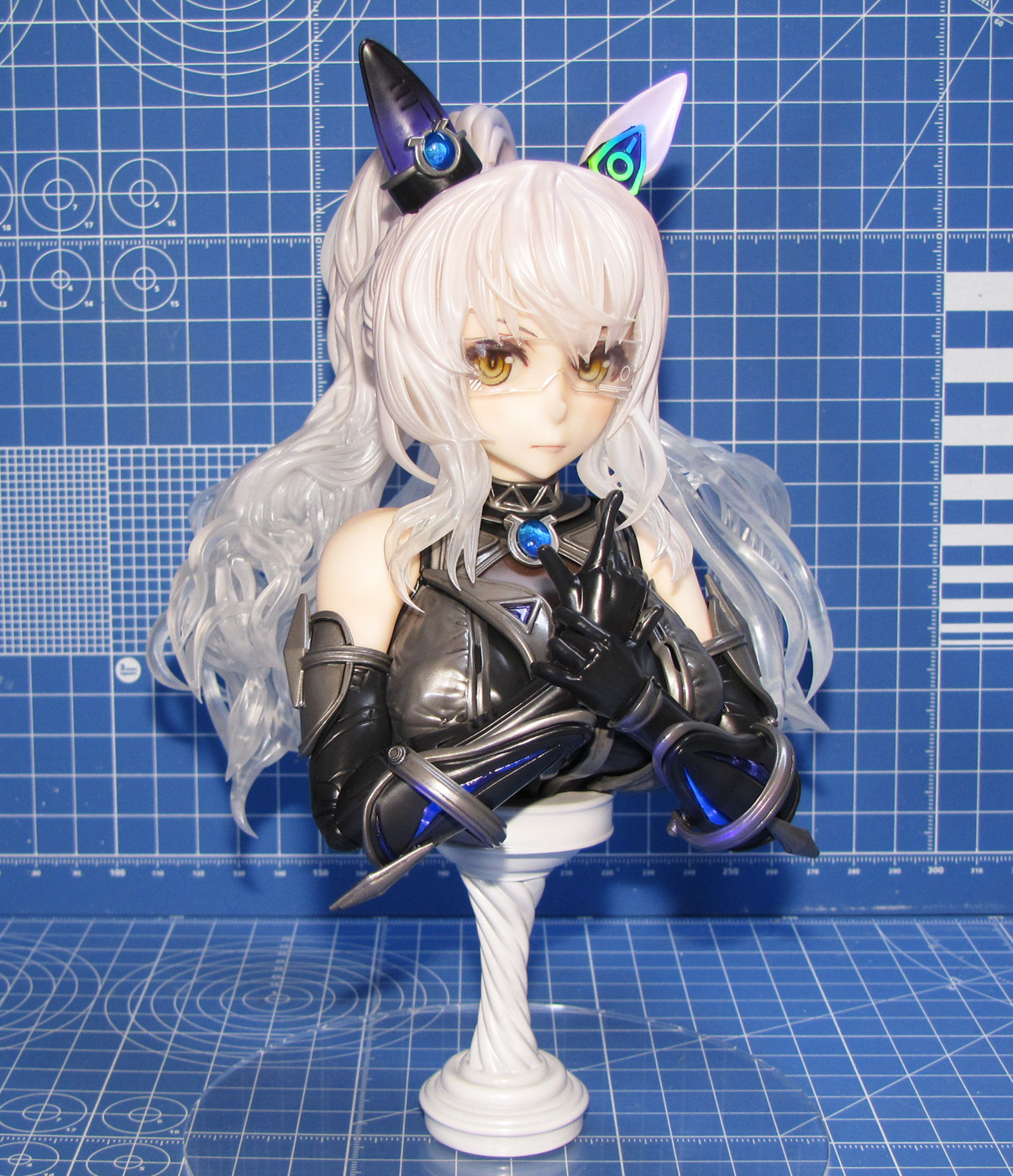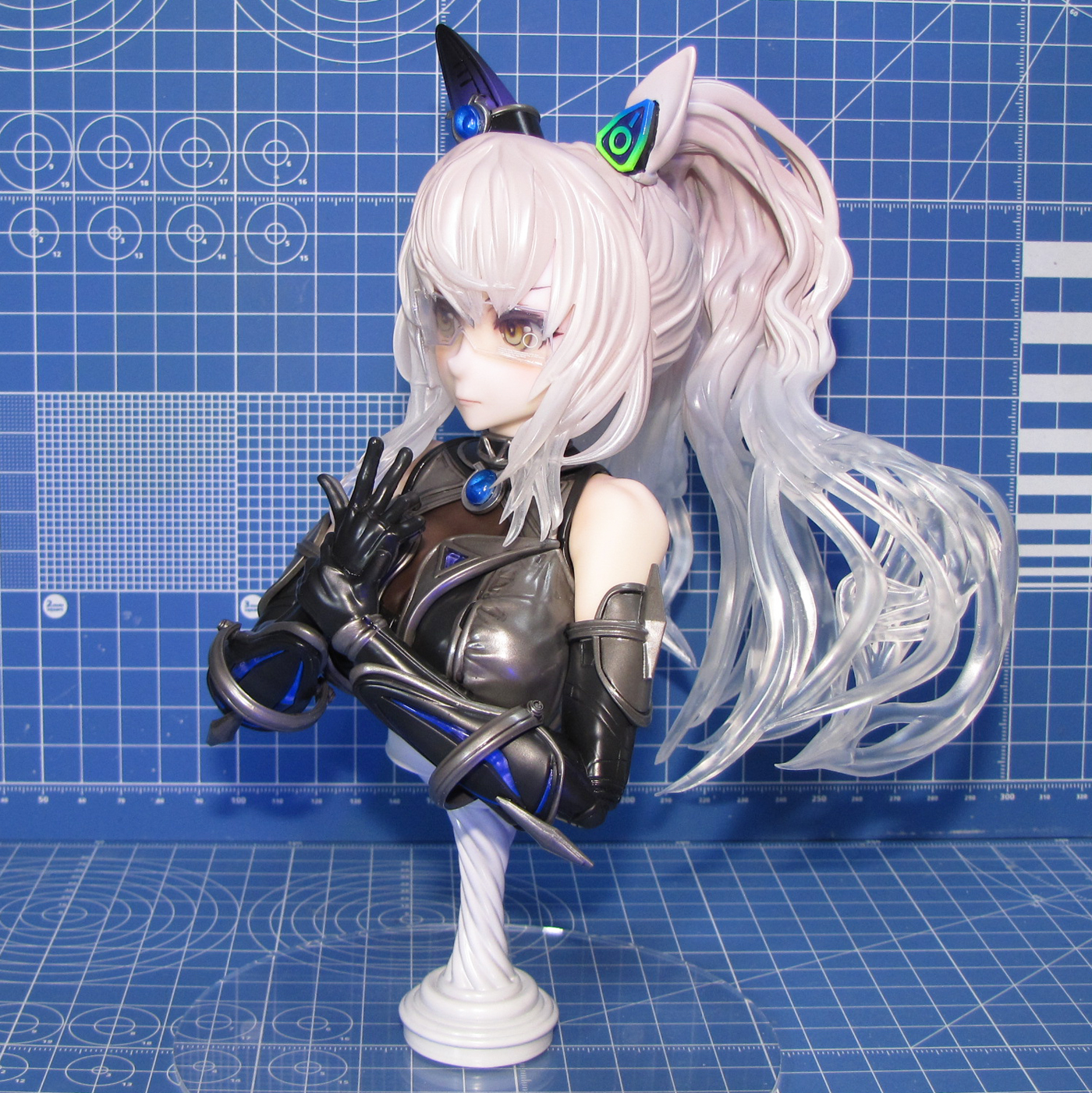 ディーラー「秋月剛」さん製作のガレージキット ウマ娘プリティーダービー より 「ビワハヤヒデ胸像」です。 全高は約20cmで、胸像という事でかなりの大きさがあり、完成後の満足度も高いです。 光硬化式3Dプリンタ出力タイプのキットで、パーツ数は53、うち16パーツがクリアーパーツです(うち4個は予備) 髪の毛パーツは全てクリアーという驚きの構成でした。なんとアクリル台座も付属していました。 瞳パーツはモールドありと無しの2種類があり、モールドありで組み立てています。 透明レジンでコーティングしたりしていますが、眼鏡があるので違いが目立たないですね。 眼鏡のデカールはサテライトデカールを使用し、それっぽい形状のものを使っています。 |