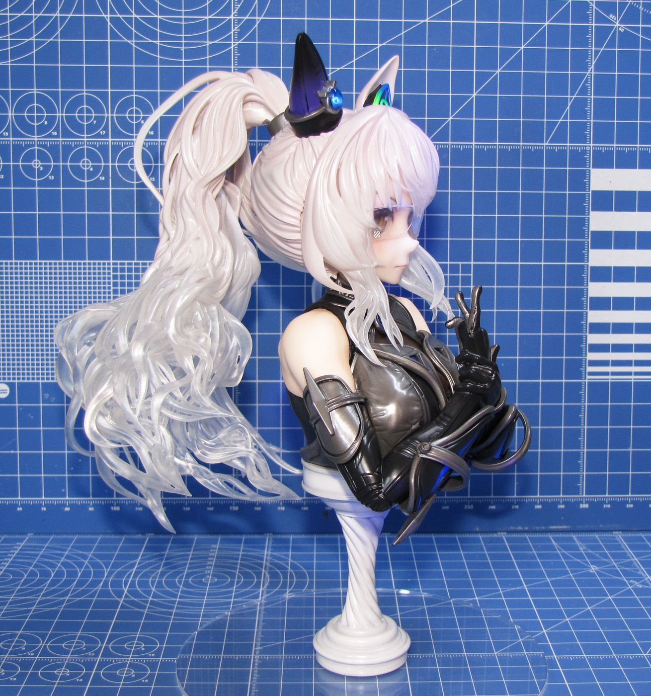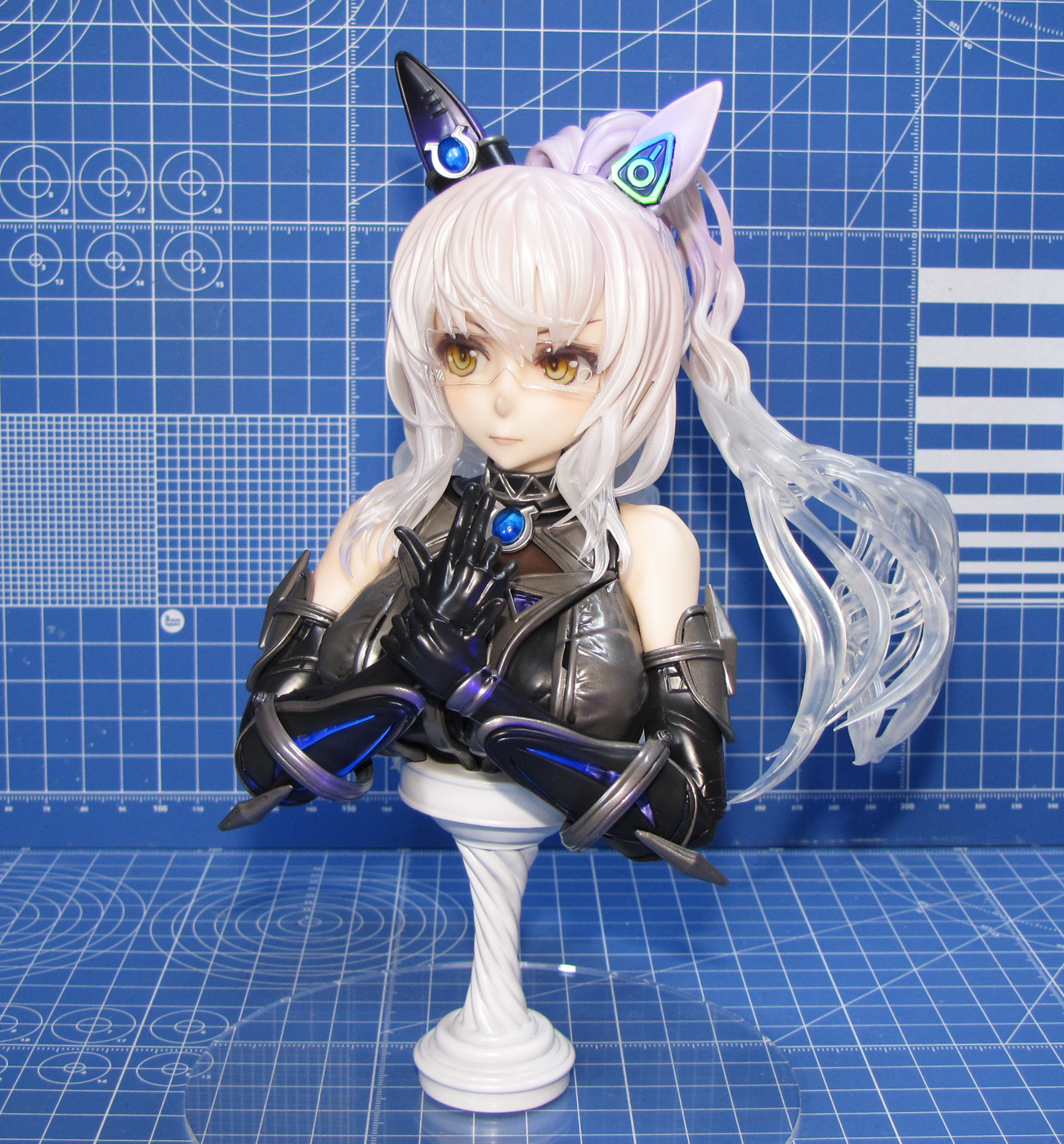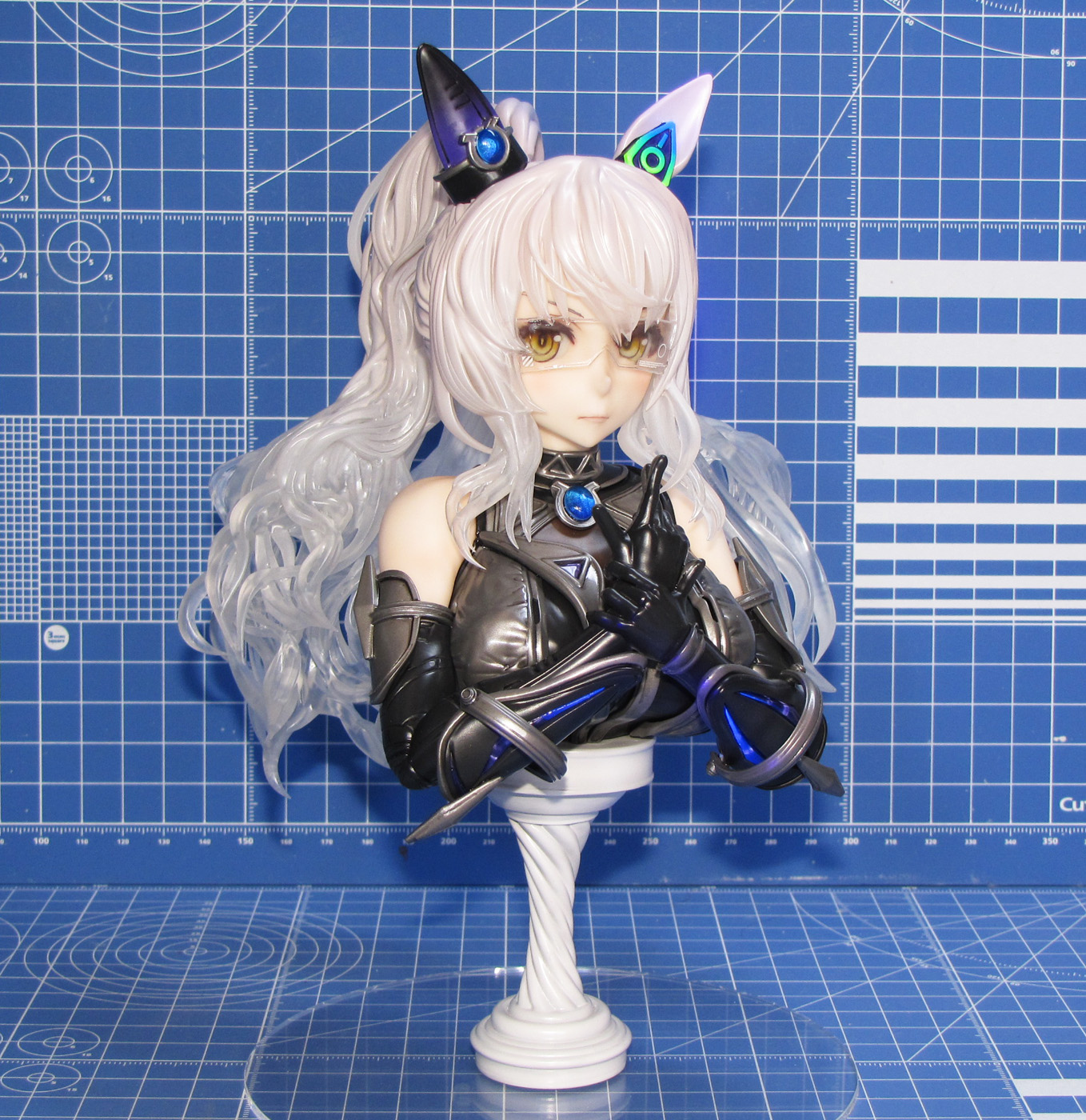 ディーラー「秋月剛」さん製作のガレージキット ウマ娘プリティーダービー より 「ビワハヤヒデ胸像」です。 全高は約20cmで、胸像という事でかなりの大きさがあり、完成後の満足度も高いです。 光硬化式3Dプリンタ出力タイプのキットで、パーツ数は53、うち16パーツがクリアーパーツです(うち4個は予備) 髪の毛パーツは全てクリアーという驚きの構成でした。なんとアクリル台座も付属していました。 瞳パーツはモールドありと無しの2種類があり、モールドありで組み立てています。 透明レジンでコーティングしたりしていますが、眼鏡があるので違いが目立たないですね。 眼鏡のデカールはサテライトデカールを使用し、それっぽい形状のものを使っています。 |